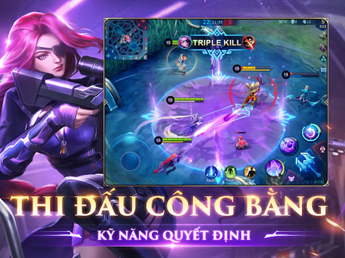 Quick matchmaking – in just 10 seconds, dramatic action, glorious combat. With the familiar 3-way map, jungle looting, keeping skill lines, breaking push turrets, sneaking attacks or perfect "hooking" phases,... all the interesting things appear right away. in this masterpiece