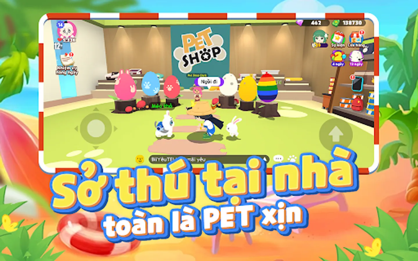 Meet new friends at the Plaza, go shopping, or play a variety of short games at the Game Center.