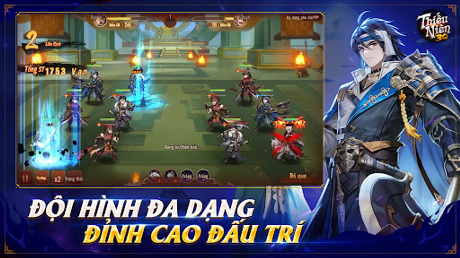 The attraction of the Tam Quoc role-playing strategy game series is even higher in Thieu Nien 3Q. As one of the few general card games that possesses manga anime graphics, combined with the 3Q series of generals built in youthful graphic style: Lu Bo, Trieu Van, Ngoa Long Gia Cat Luong, Quan Vu ... in order to recreate the chaotic scene of the Three Kingdoms period, by coordinating with each other by coordinating, extreme and beautiful skills in TN3Q.
