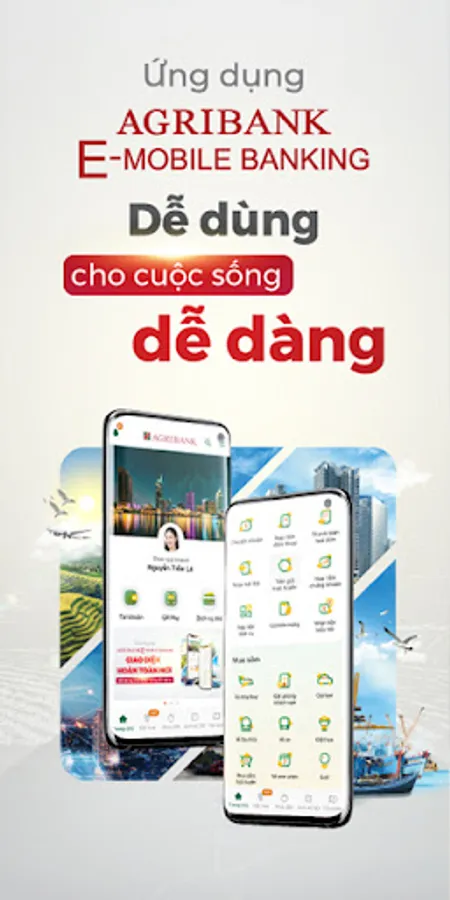 With a cutting-edge interface, a rich and diverse service ecosystem, Agribank E-Mobile Banking brings SIMPLE - EASY – CONVENIENCE – ANYTIME – ANYWHERE payment, shopping, entertainment... experiences of to customers.