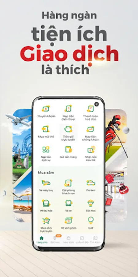 - Free transaction fee when paying utilities bills (electricity, water, internet, television, tuition fees...), booking flights/hotels, purchasing train/bus/movie tickets online, online shopping, hailing taxi, making delivery/flower delivery,…