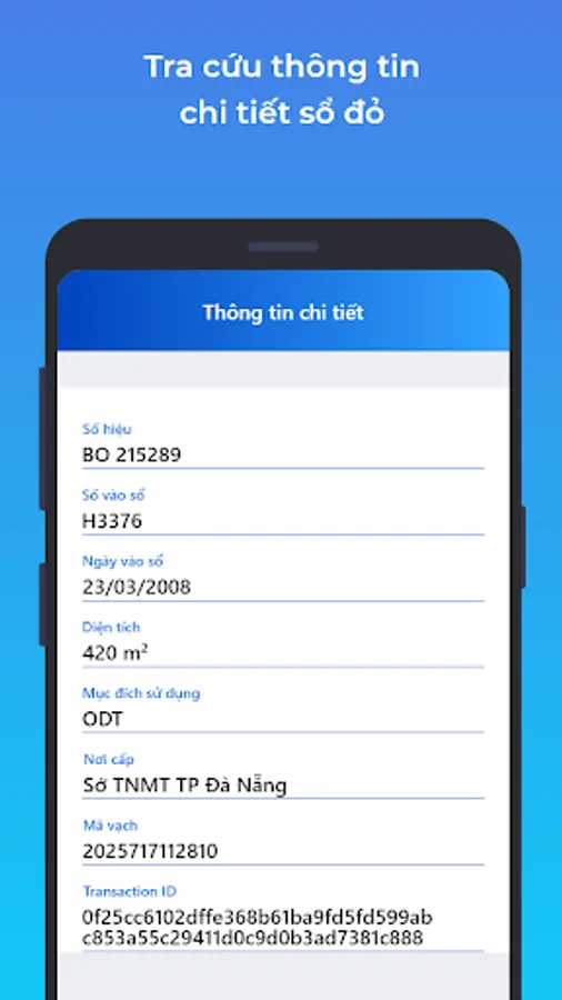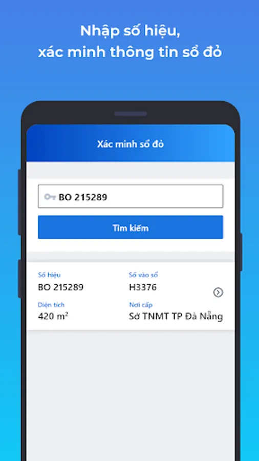 Verification software Certificate of land use rights, ownership of houses and other assets on land in Danang City. Allows checking and comparing the authenticity of the red book / the pink book issued by the Department of Natural Resources and Environment of Da Nang city