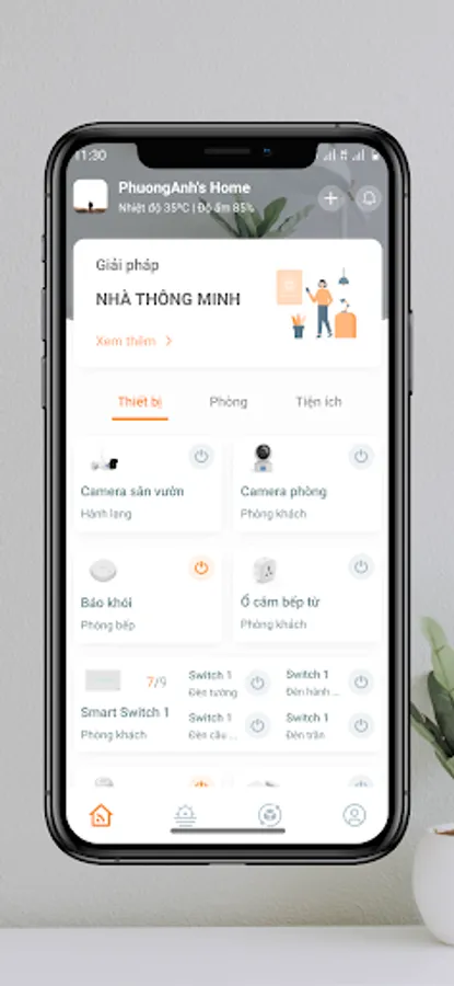 The application provides a smart home management solution, allowing the connection, control, and automatic installation of smart devices in the home. The solution helps customers easily monitor, set up remotely, and ensure the safety of their home.