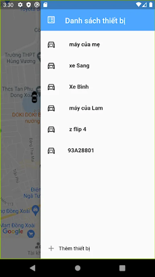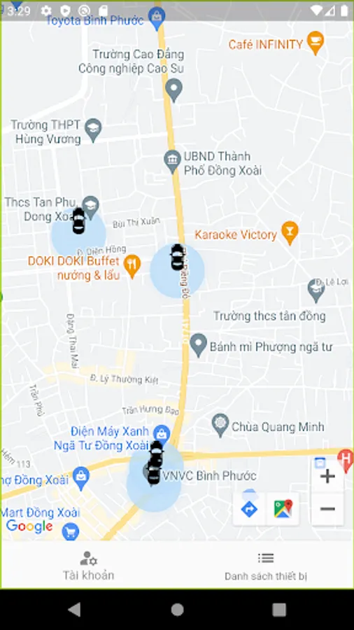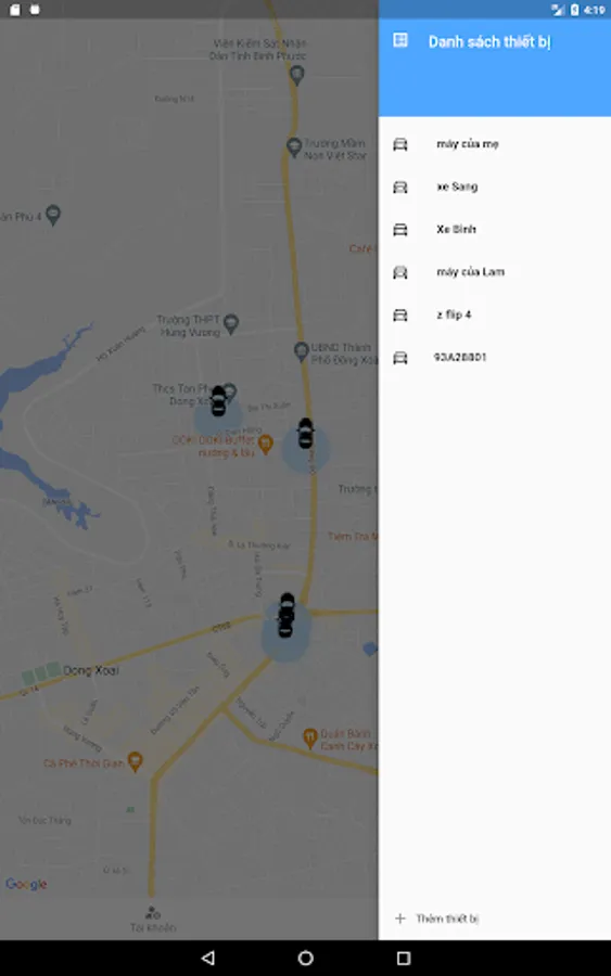 The application supports individual users to observe and get location information of cars, cars that have been installed with Vincar screen devices.