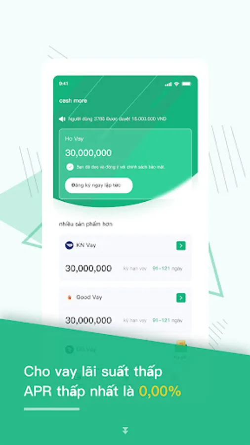 Cash More is an online installment loan service platform specially designed for Vietnamese people! We can provide a cash loan service, the operation process is simple and clear, you can clearly check the loan repayment progress, relieve your financial pressure temporarily. We also offer newbie cashback discount, exclusive coupons and other perks, come and download Cash More to get your surprise quota!