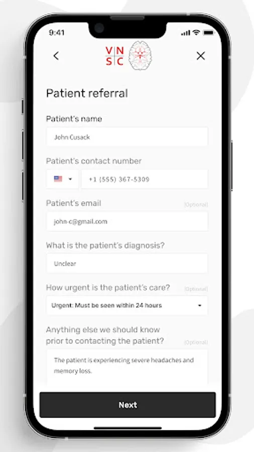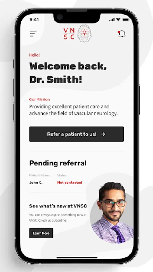Created by doctors, the VNSC app streamlines patient referrals and provides excellent patient care promptly. The app can be used by a medical professional as well as by a patient for self-referral. All we request is the patient’s contact information and a reason for the appointment. Referring healthcare professionals or patients can choose a VNSC physician based on the diagnosis provided. After the referral is complete, the chosen VNSC physician and the office staff will receive a notification to contact the patient referred and schedule an appointment.