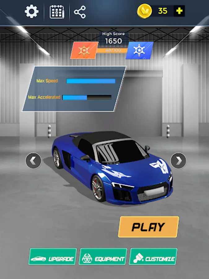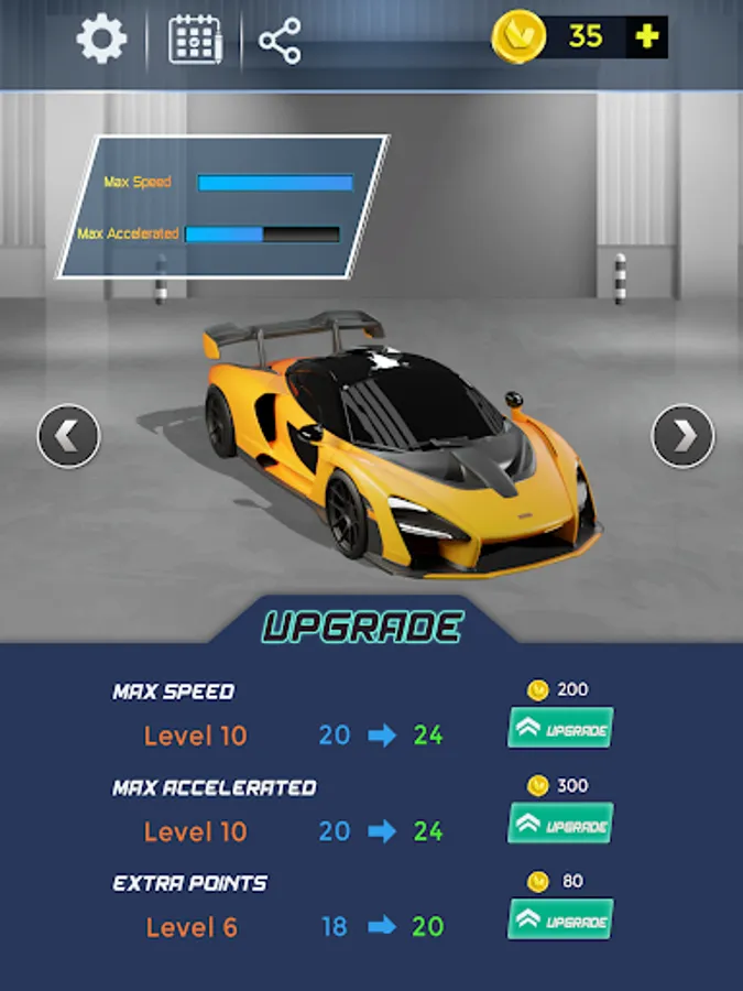 • Extensive tuning options: increase engine power, add turbo, change handling settings (weight distribution, camber angle, etc.), change gear ratio and shift speed