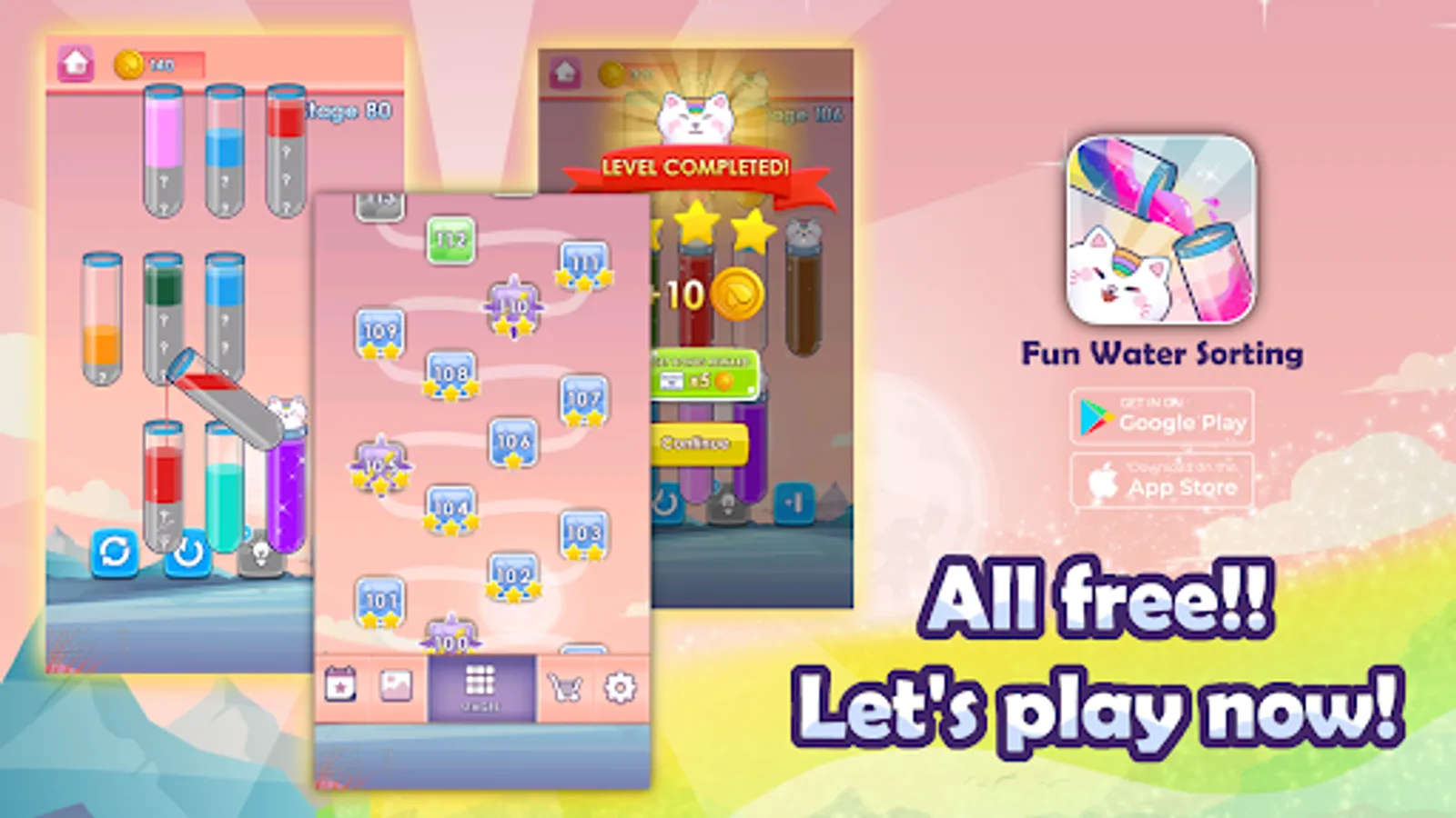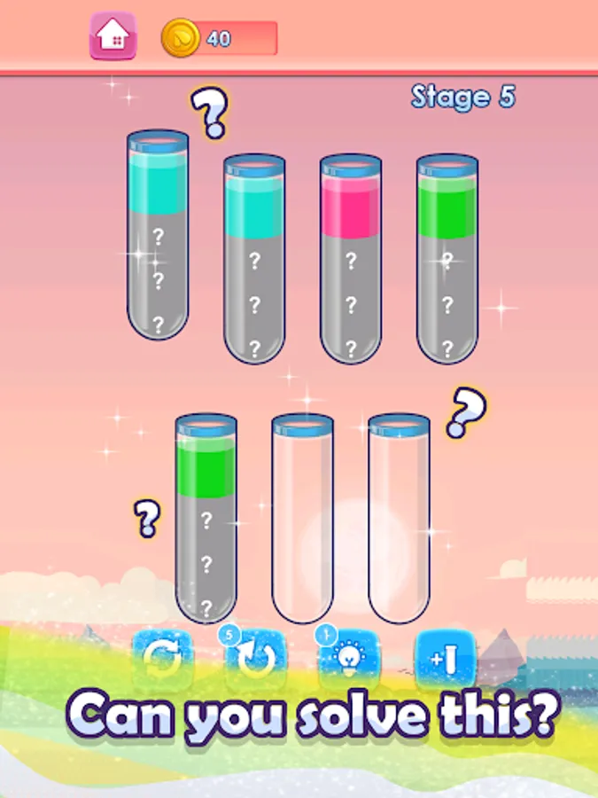 💦 This colorful game looks easy but also challenging. The higher you reach the level, the harder it gets because there are more tubes to arrange colors.