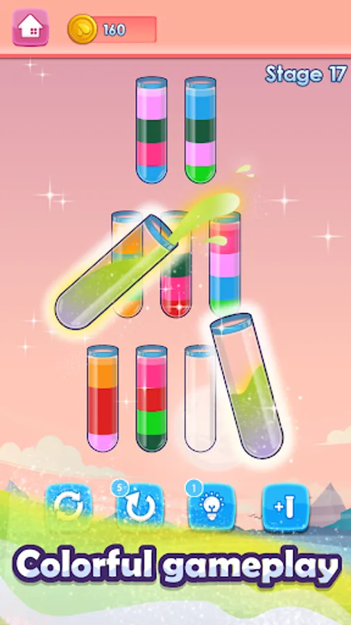 💦 Think, strategize, anticipate and use colored tubes in every move and see before pouring if there is room left in the glass. Win jewels at the end of each level, use jewels to unlock more hints in these matching color games.