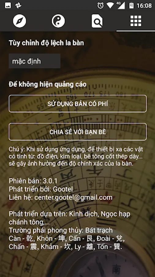 Feng shui compass Vietnam including 2 free version and a fee. The main difference between the two versions: