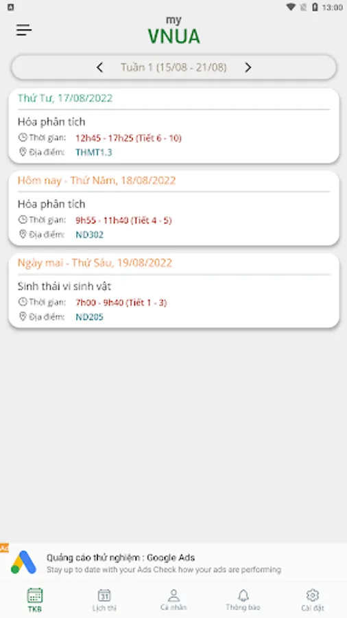 myVNUA includes many functions designed to suit students / faculty members of the school, allowing students and faculty to quickly perform tasks 24/7 in an optimal way such as: Research personal TKB, look up exam schedule, update announcements of the Institute/Department, ...