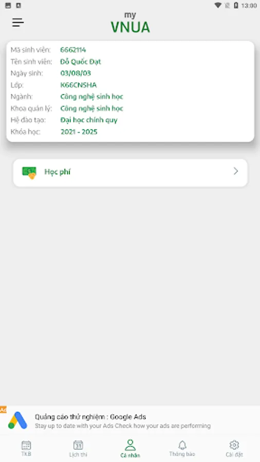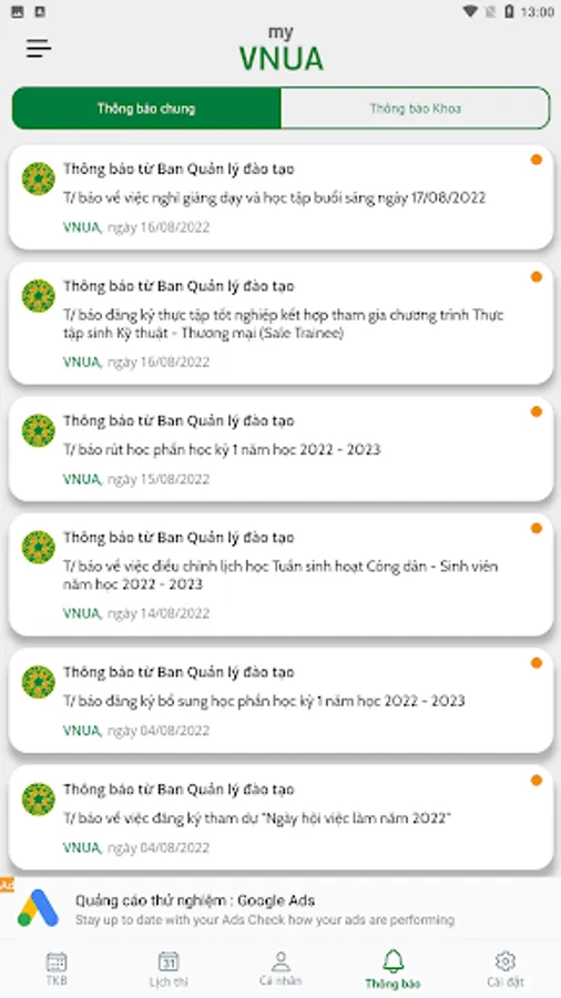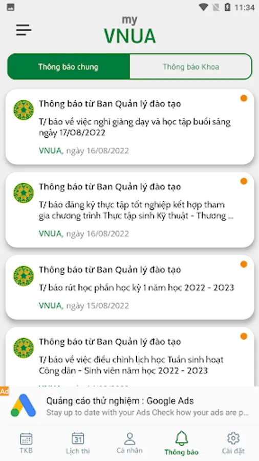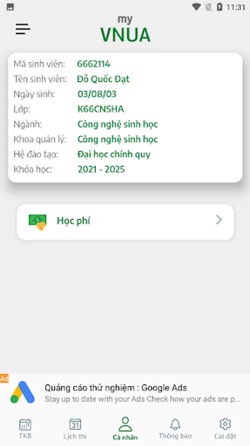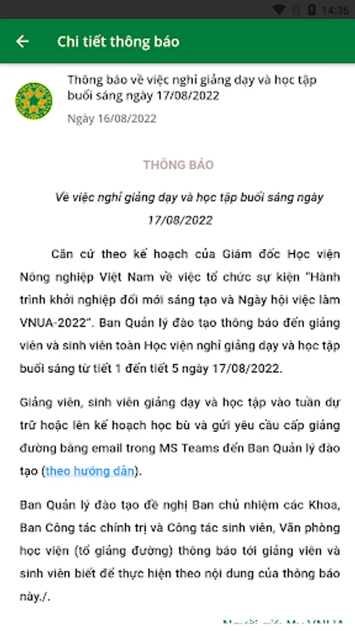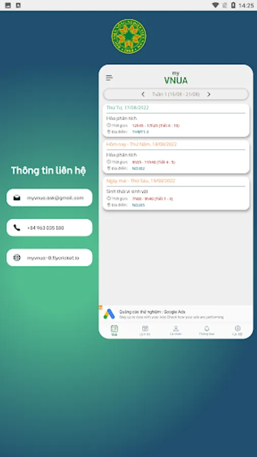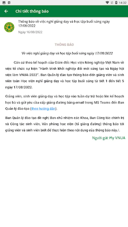 myVNUA is a mobile application that aims to optimize the daily tasks of lecturers as well as students of Vietnam National University of Agriculture (VNUA), developed by students under the guidance of Mr. Lecturer in IT department of Vietnam Academy of Agriculture.