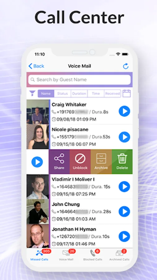 -Call center: Call recording, SMS, Transcript, auto response to Guest FAQs.