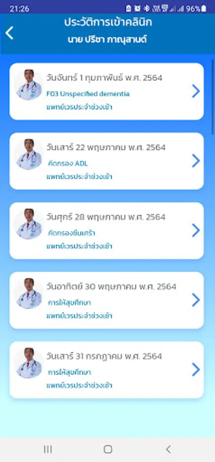 Check the history of visiting the clinic for a health check-up