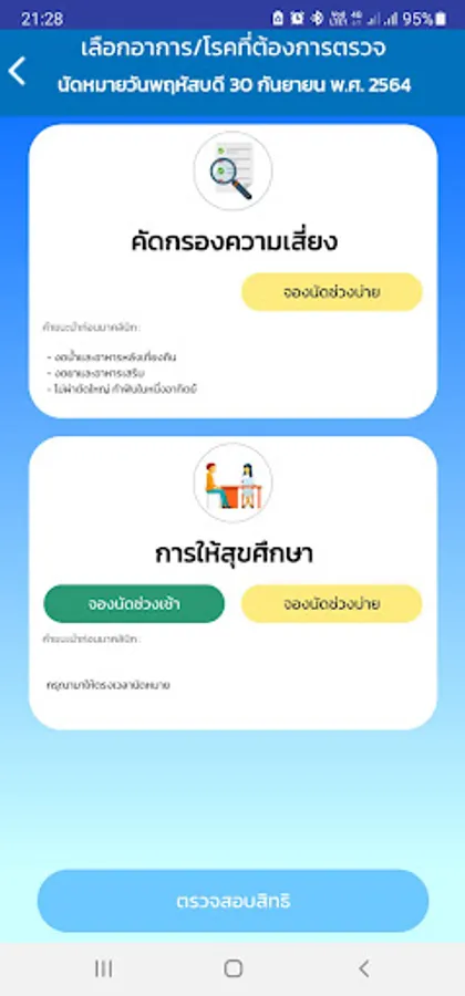 Service to make an appointment in advance for a health check-up at the clinic