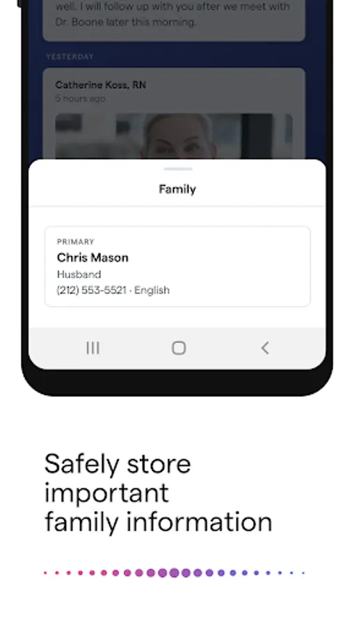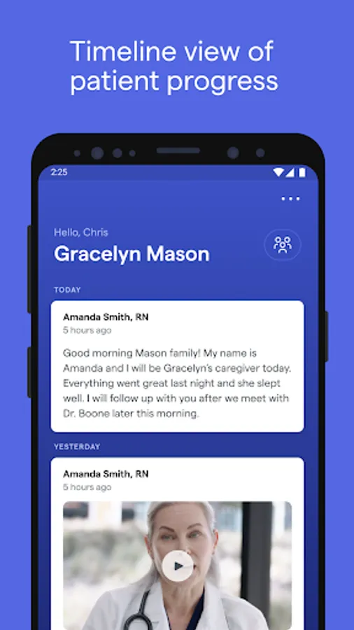Voalte Family is a HIPAA-compliant application for clinicians and patients. It allows clinical staff to securely and easily update a patient’s family members with text, photos or video via chat functionality. Family members should talk to their loved one’s care team to activate the application.