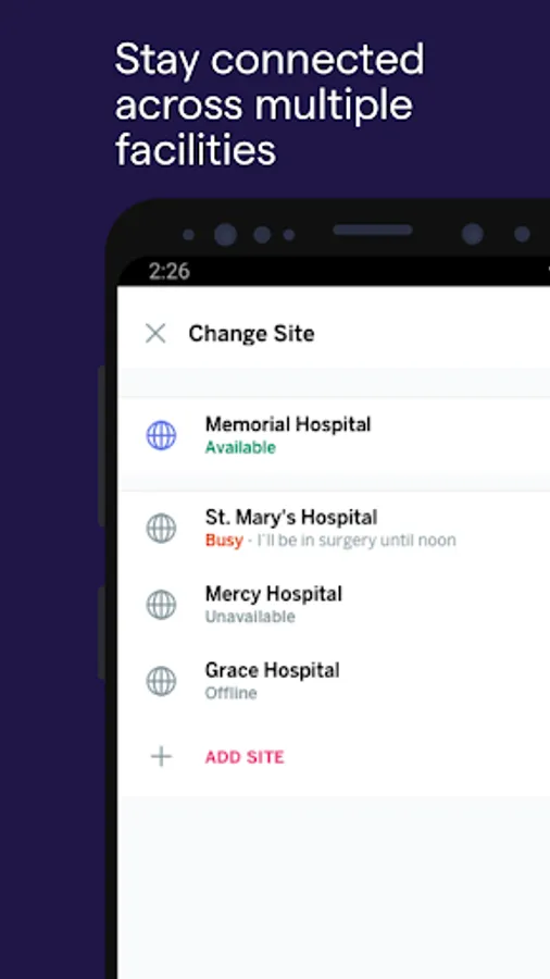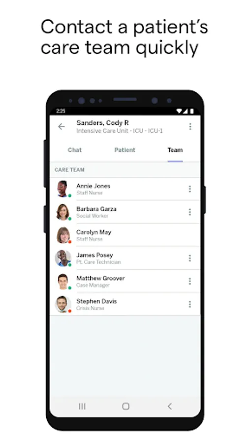 Voalte Me connects caregivers outside the hospital with Voalte One users inside the hospital. Using personal smartphones, care teams communicate and collaborate via cellular or Wi-Fi connections for access anytime, anywhere. Voalte Me gives doctors and other clinicians a HIPAA-compliant alternative to standard texting.