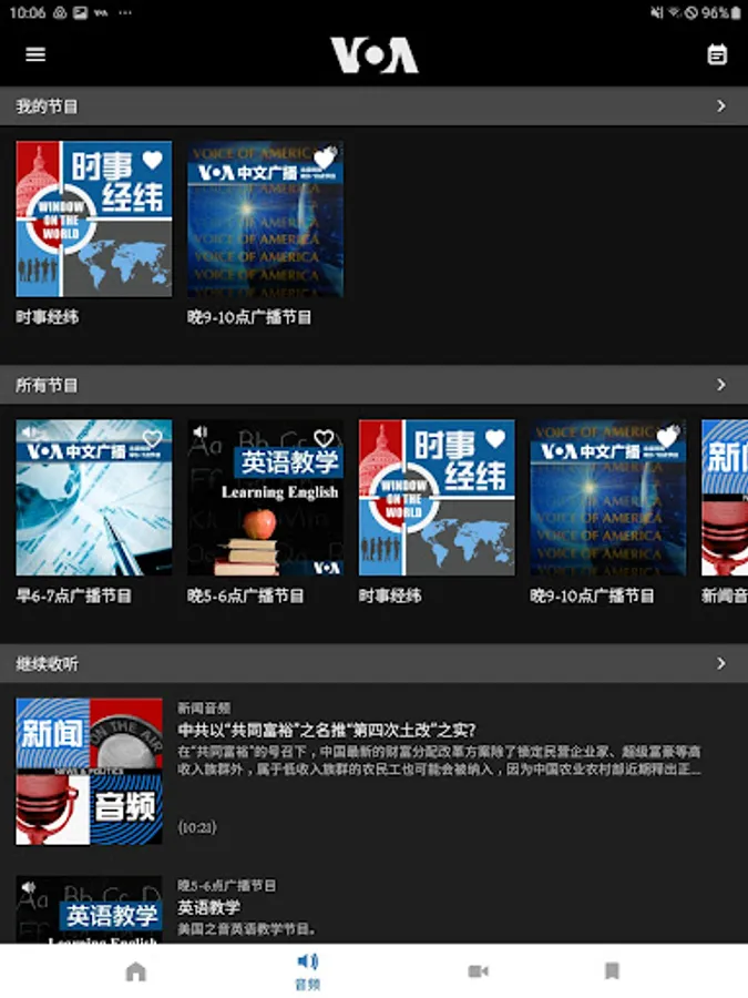 VOA News App features: