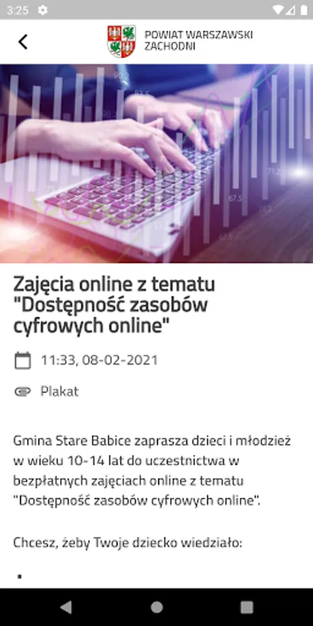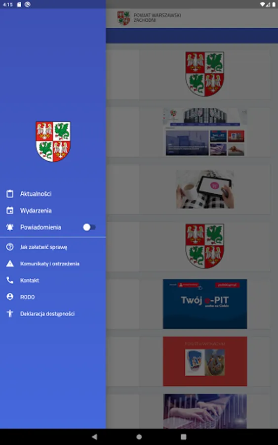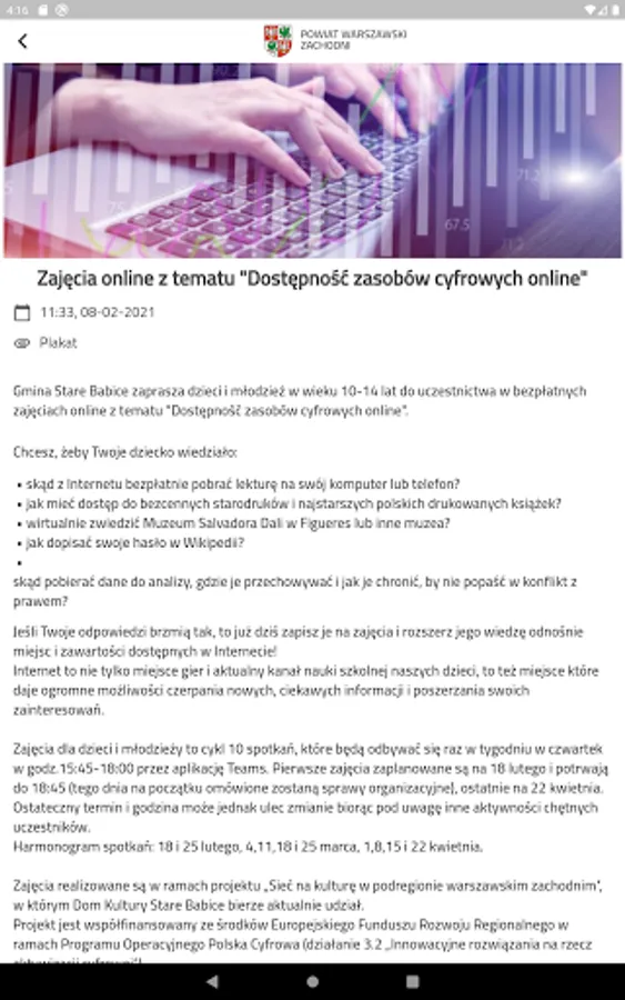 Thanks to the application, you will be up to date with the nearest events and information about our poviat.
