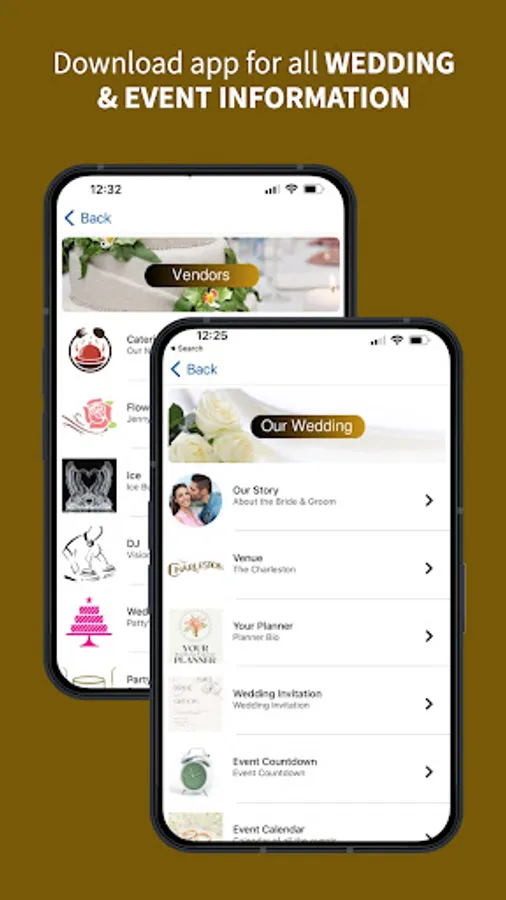 Bride and Groom have all aspects of their special day presented under the cover of a single mobile application in the palms of their family and friends.