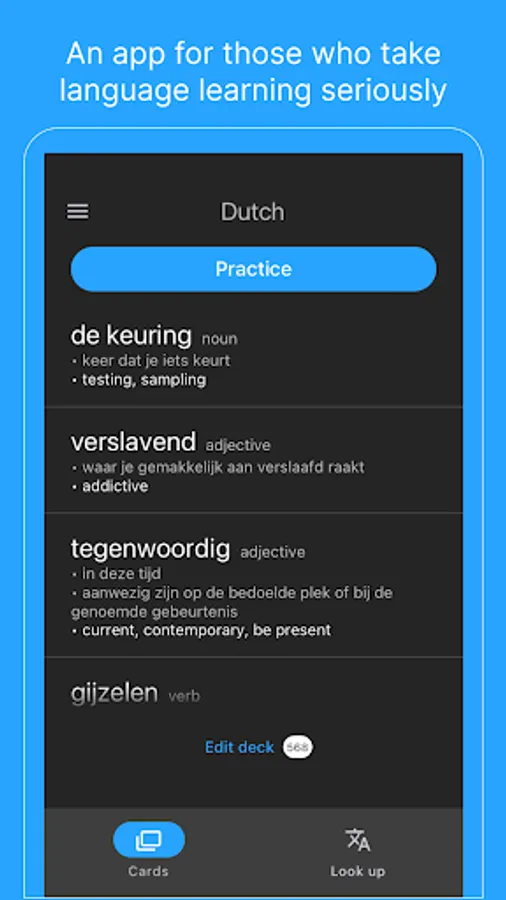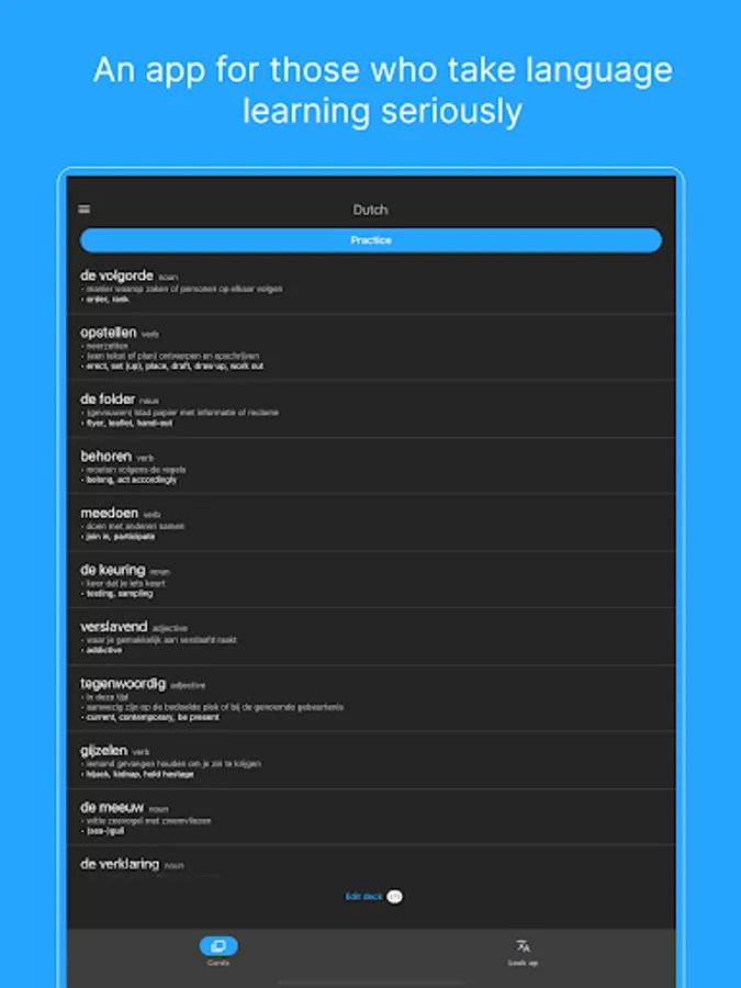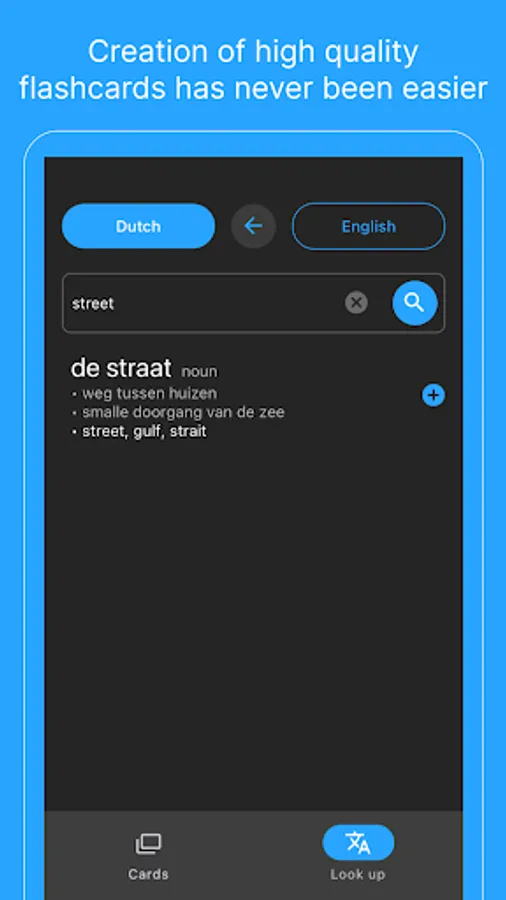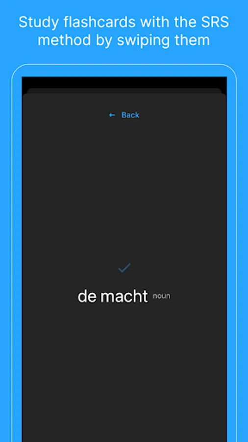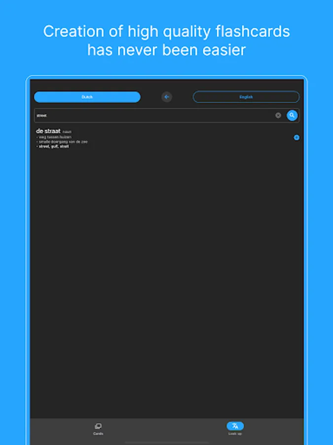 - Reverse Translation: Search for a word in the language you already know, and witness as the app creates a proper flash card in the language you're learning. This unique feature eliminates language barriers, enabling seamless vocabulary acquisition and retention.
