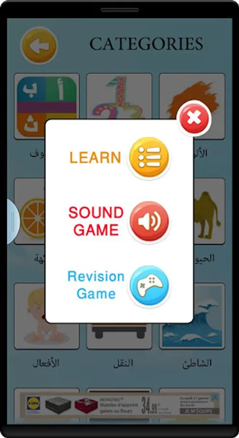 Learn arabic vocabulary game is the perfect tool for toddlers and older children to learn Arabic vocabulary. More than 300 commonly used words including colors, numbers, animals, fruits, verbs, body parts, house items, places, and many more.