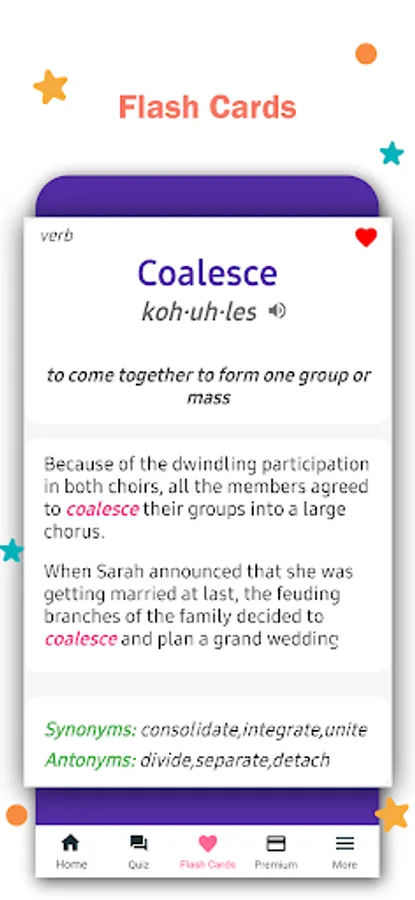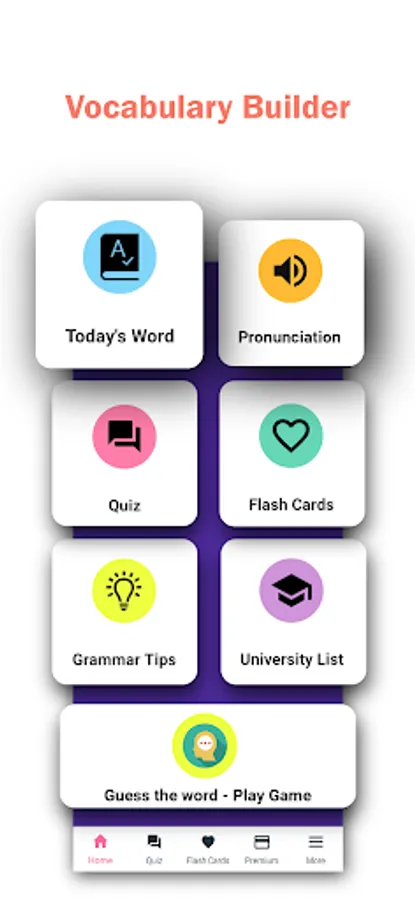 Study from saved flashcards. Helpful for students preparing for IELTS, GRE, TOEFL, SAT, GMAT tests. Simple and beautiful vocabulary builder app for everyone.