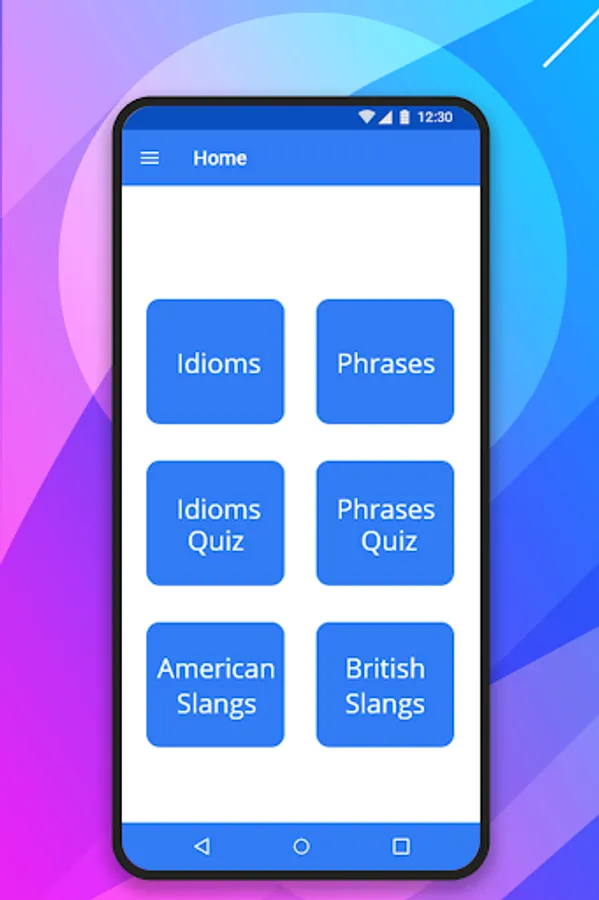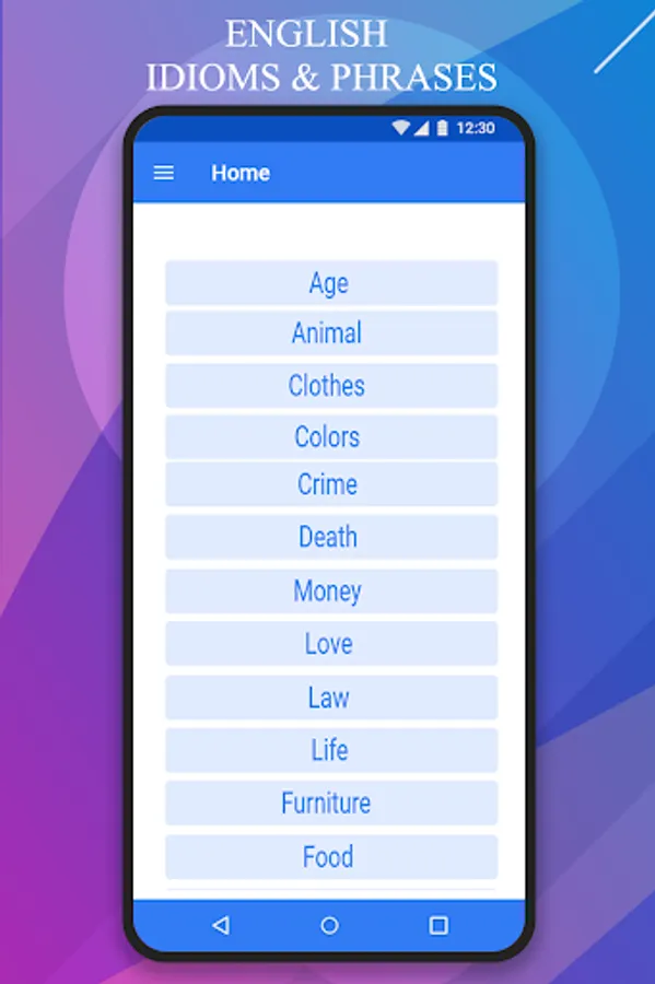 English Idioms and Phrases is a smart English learning app that will help you learn all the English idioms, phrases and slangs with their meanings, definition and examples. Therefore, if you are someone who is interested in learning and speaking English like native English speakers, then this English learning tool encompasses all the English idioms, phrases, and slangs you need to learn in order to improve your English.