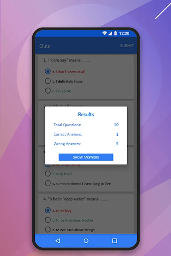 Quizzes – The app also has quizzes that will let you know your progress on learning the idioms, phrases, and proverbs. You can take idioms and proverbs quiz alphabetically and then check your score.