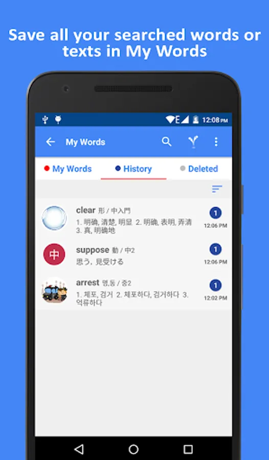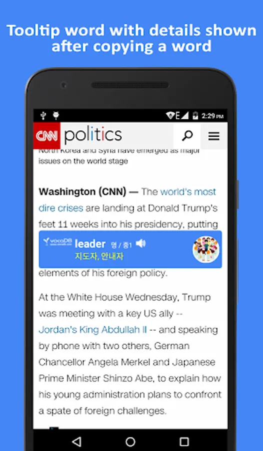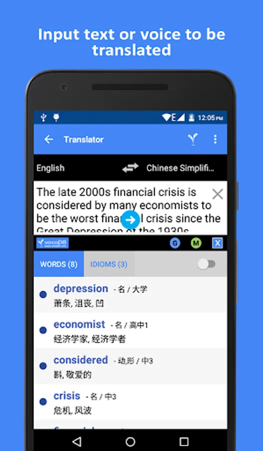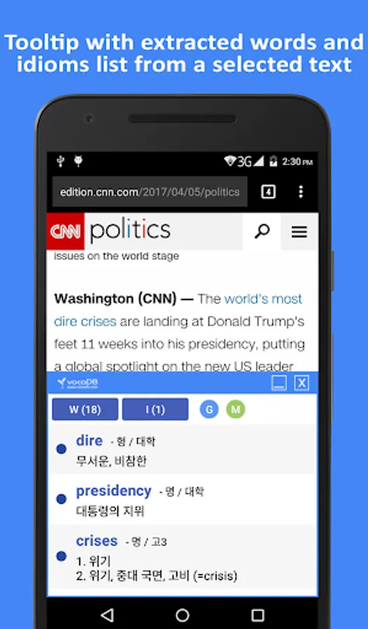 Search and copy a text from any app or browser, extract word list with translation and display meanings, and even automatically save words in your mobile is more convenient using the vocaDB 38 Language Dictionary.