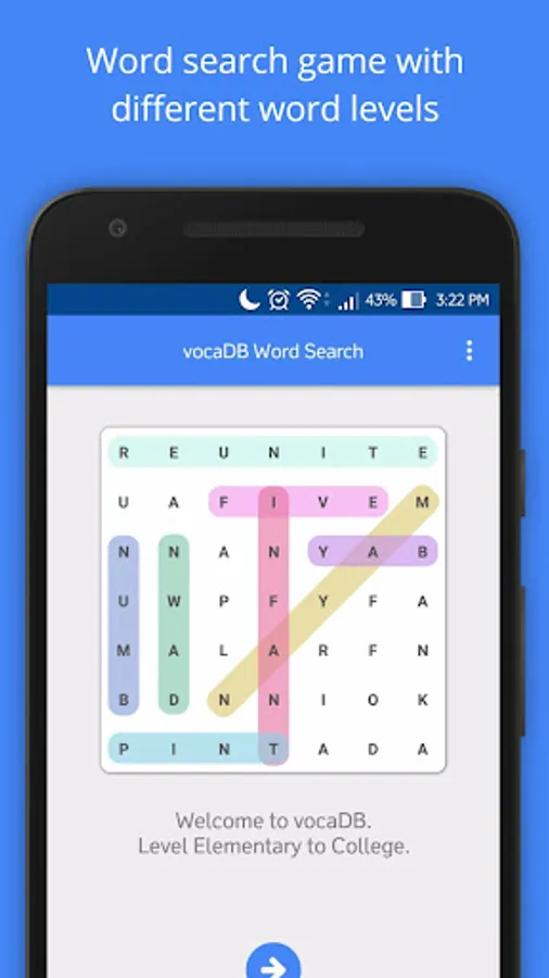 vocaDB Word Search is a must try word game with level Elementary to College.