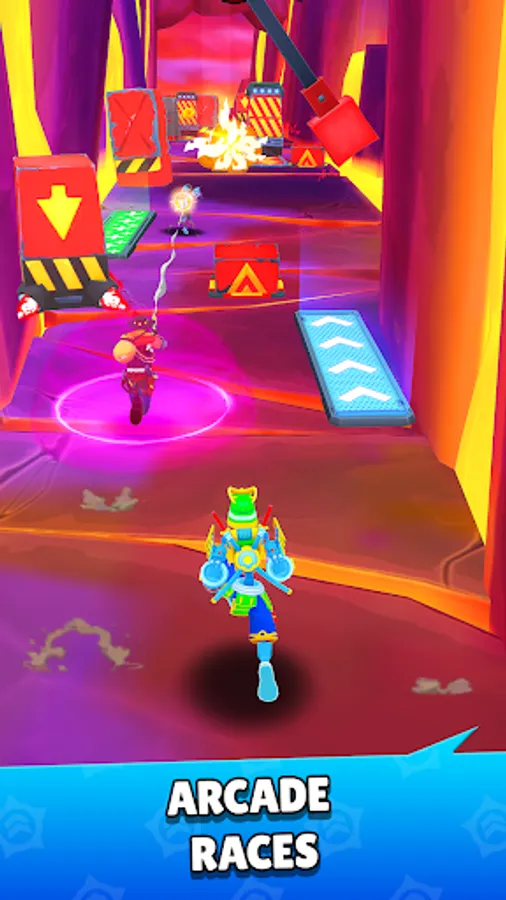 Join a team of hero runners and participate in online runner races to defeat the robots!