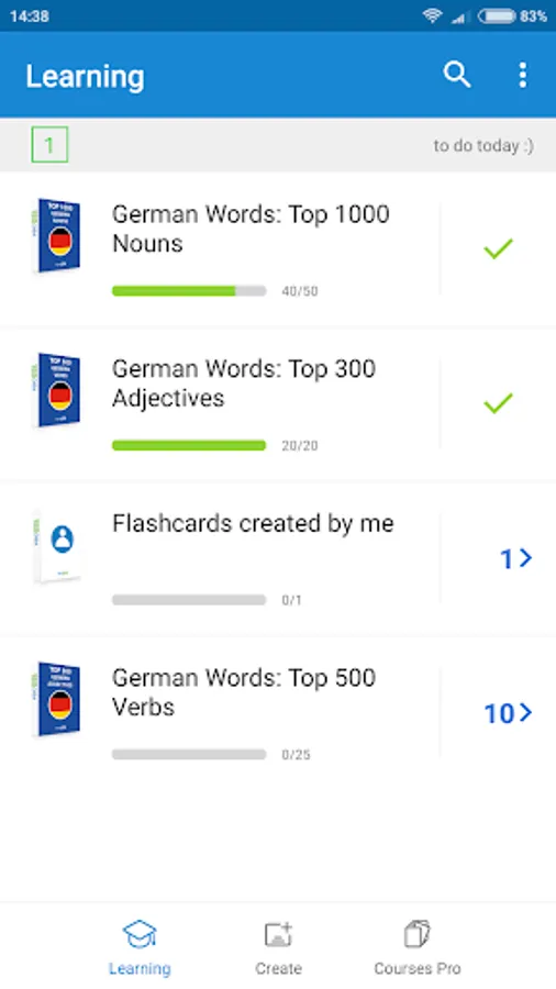 Our courses are created by professionals in linguistics, so you can trust the material that is included in them. Besides, hundreds of users, most of whom are native German speakers, create daily lots of lessons to help others in learning German. Our database is unique! You can find something to learn on any topic you are interested in, whether it's the basics of the language or hard financial terms.