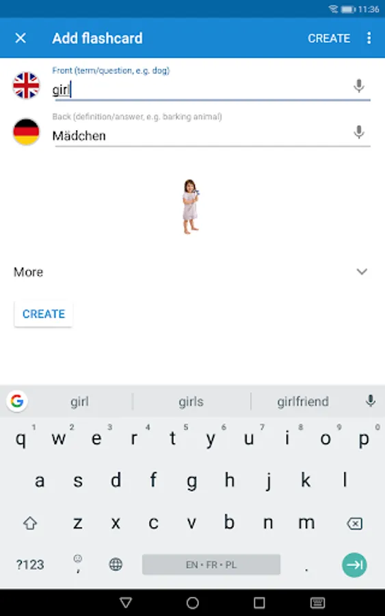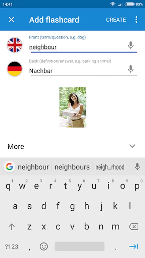 You can use our application as an English-German translator. Just type the word in English or German and we will do the rest. The translation, along with an image and sentence will be generated by the system. Apart from the translation, you will be able to add this (with pronunciation and exemplar usage) to your own flashcards.