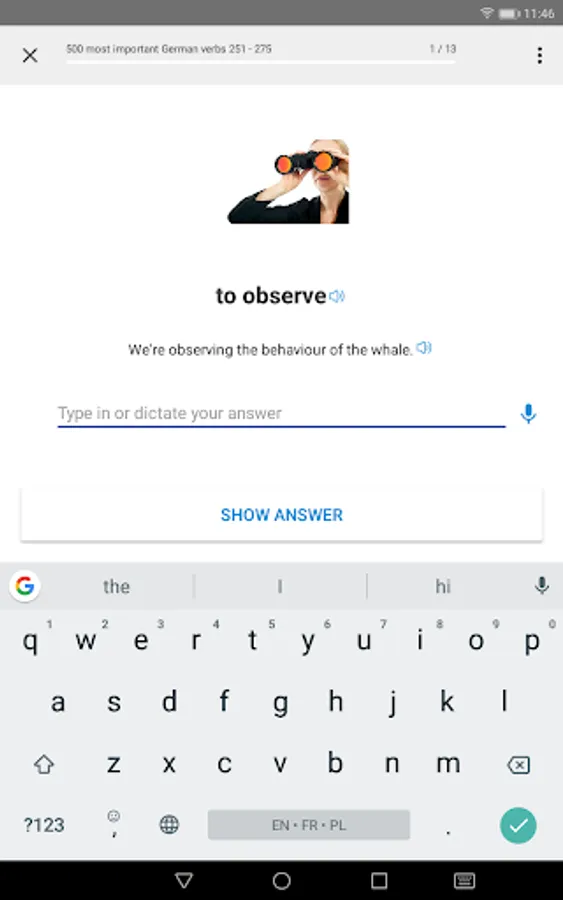 Flashcards are constantly rising in popularity, due to the fact that they combine entertainment with learning. If you aim to know and speak German fluently, for studies, work or in order to impress native speakers with your knowledge during the next trip to Germany - this German learning app is perfect for you!