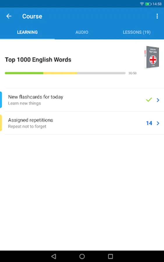 Motivation and discipline are the key to learning any language successfully and we are here to help you say on track. While life gets busy, our app will help achieve a systematic approach to learning. For example, you can set the widget for English after unlocking your mobile screen. We will remind you that you planned to study at that moment and you will not skip this task.