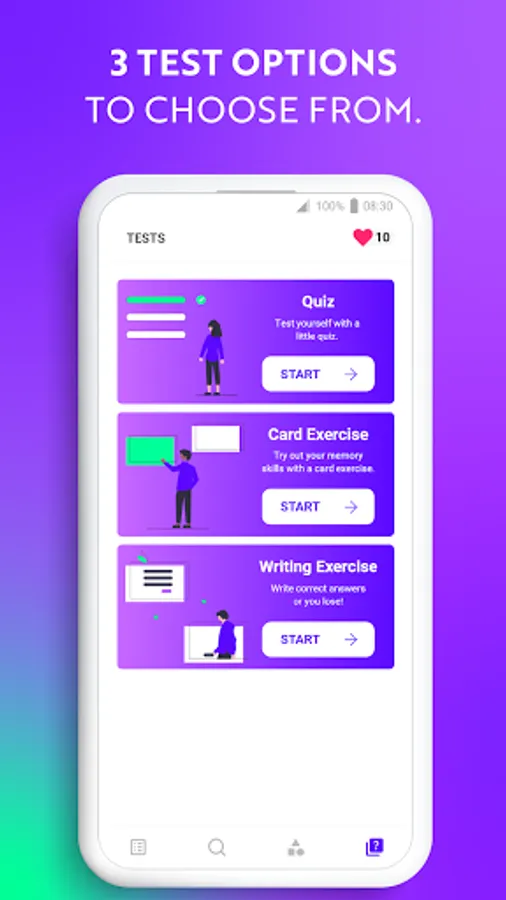 ** With our card exercise, you can repeat words and remember their meanings before the exam. While doing the exercise, think in the first place and then turn the card over.