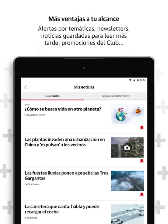 Save to read later. You can save the news that most interests you by clicking on the bookmark to read them at any other time or on another device. This useful functionality also works with videos and photo galleries.