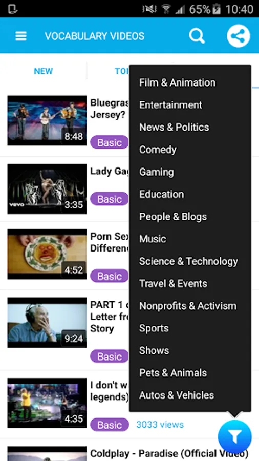 1. Learning vocabulary by new videos updated everyday with subtitle.