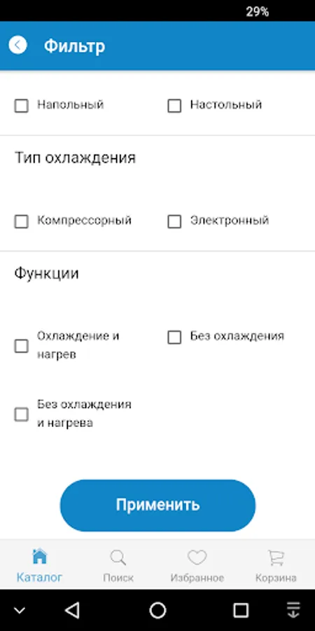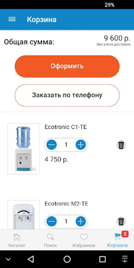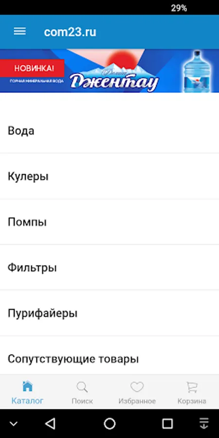 The application includes the full functionality of our site com23.ru: Non-cash payment, personal account, order history, and others.