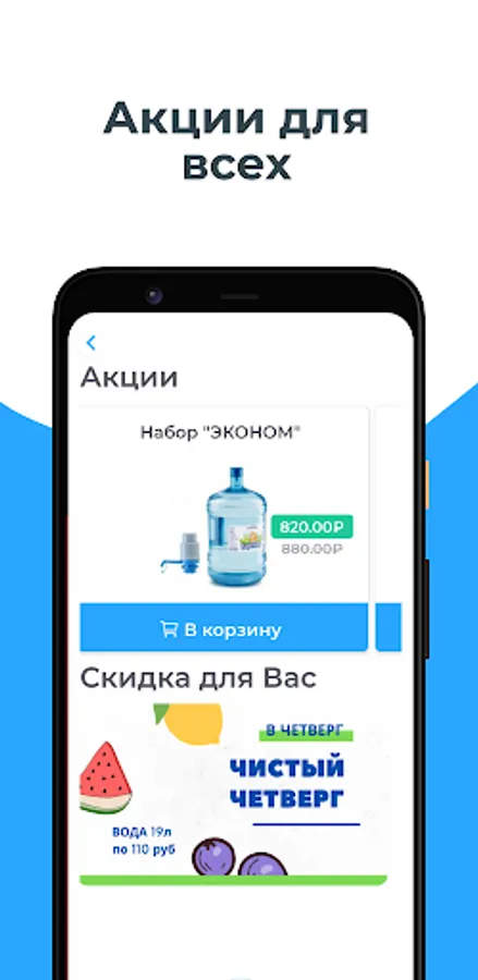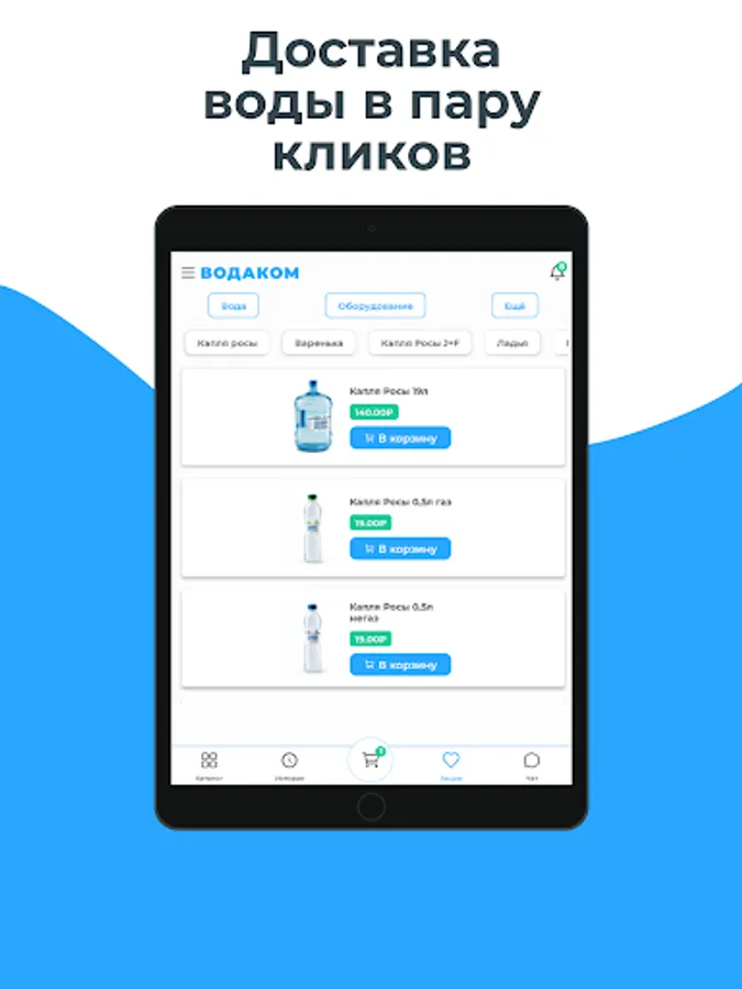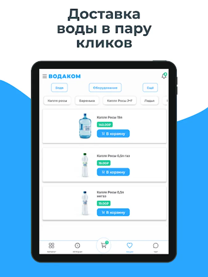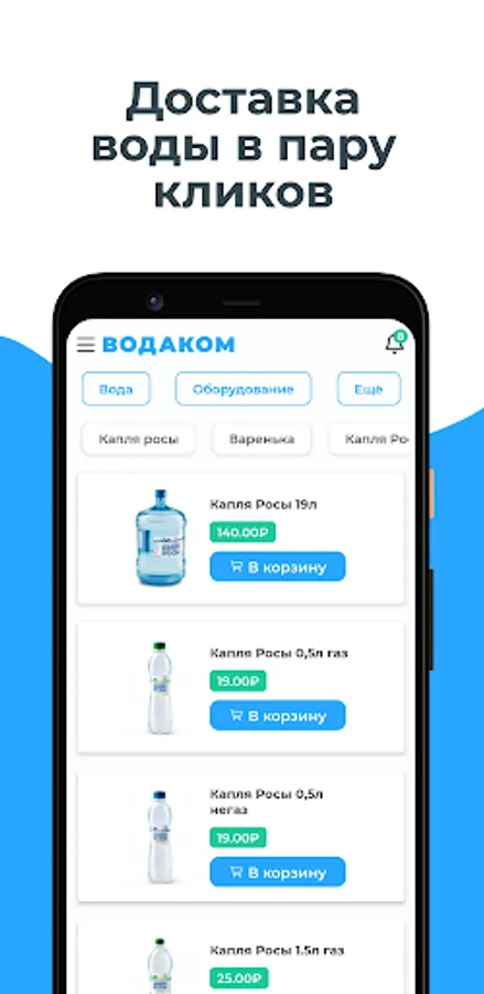 The mobile application of the Vodakom company, in which all products from the assortment of the site vodavpskove.ru are available