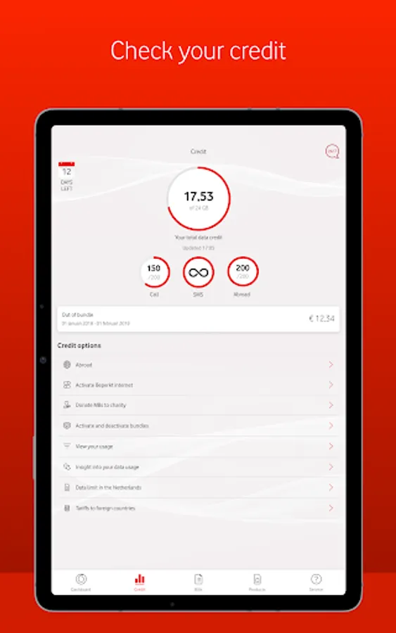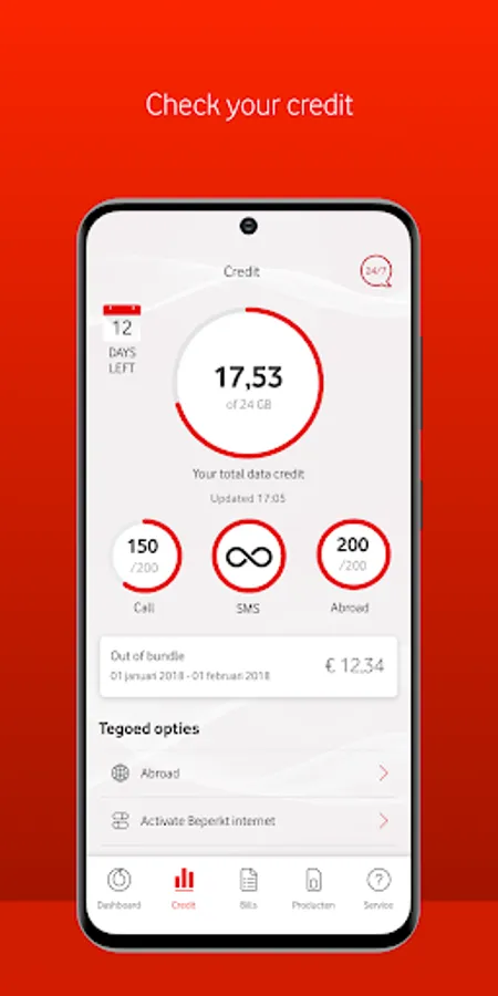 When you open the app, you will immediately see how much credit you have left. With a few more clicks you can see the details of your usage. And what if you are a prepaid user? Topping up is also possible!