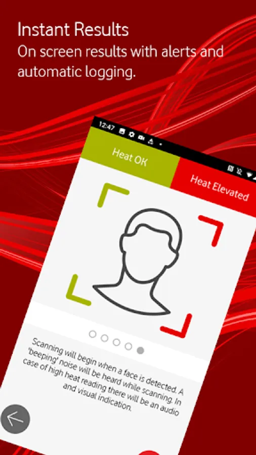 Vodafone Business Heat Detection Flex is a mobile application developed specifically for use with the Cat® S61 device with an integrated FLIR thermal camera. This app is for use with the Vodafone Business Heat Detection Flex Solution and only works in combination with the Flex dashboard. For full details please contact your Vodafone Business contact.