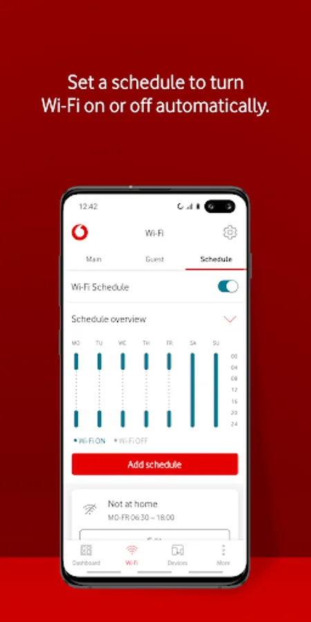 • Set up a WiFi schedule that suits your needs, with custom online and offline times