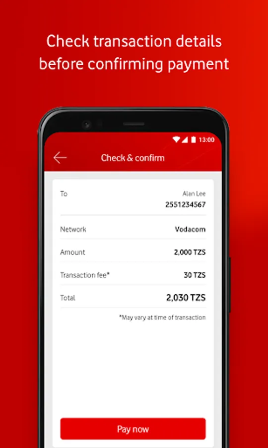• Transact with ease, by simply selecting your contact on any network from your phone book, favourites or recent recipients