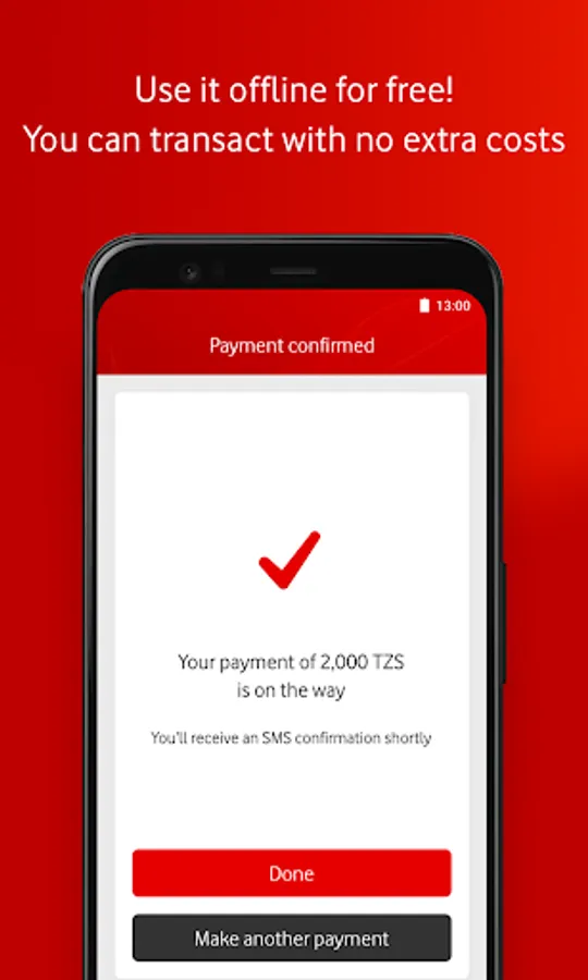If you don’t have access to an internet connection (Wi-fi or data), you can still transact with no extra costs. M-Pesa App works offline, for free! You only have to give SMS permissions