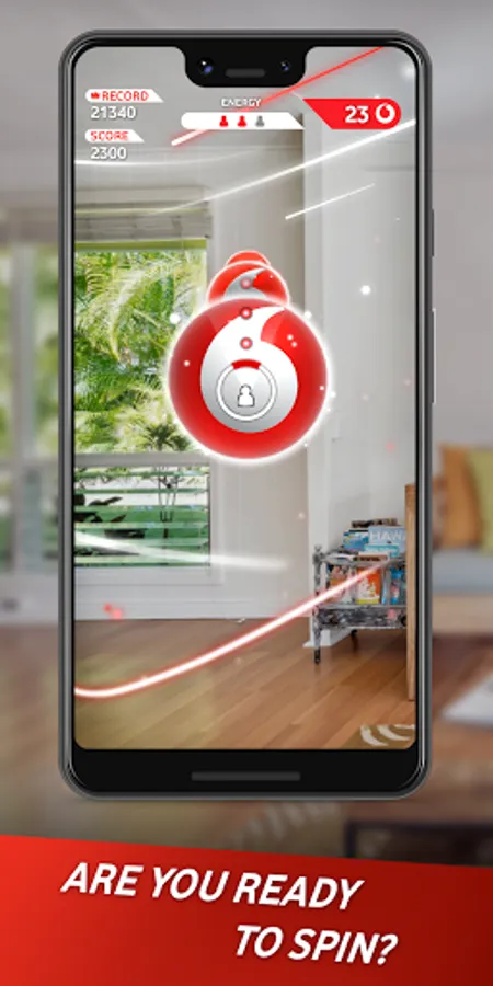 Spin around and collect all the Vodafone 5G spheres but be careful, protect yourself from the metal spikes that come directly at you.