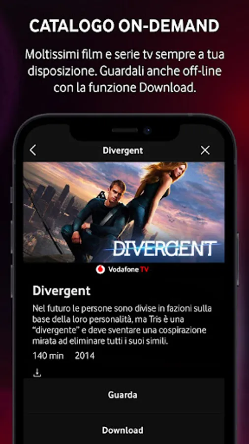 • LARGE ON DEMAND CATALOG: discover a lot of content for the whole family always at your disposal, movies, TV series and lots of news every month. You can download your favorite content and watch it whenever you want, even off-line!