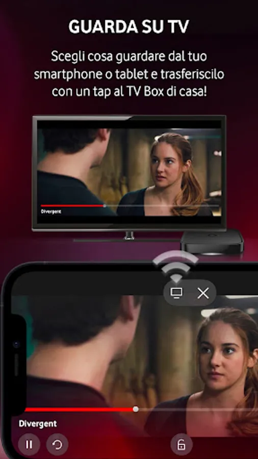 Vodafone TV is the App reserved for customers who have activated a Vodafone TV offer with TV Box that allows you to watch TV in total mobility on your smartphone or tablet with many advanced features.