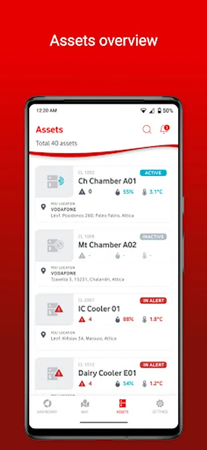 With Vodafone Temperature Control Advanced you can ensure the quality of your products and/or services by monitoring at any time, your chillers’ or freezers’ operating status & temperature.